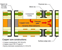 散熱管理方案、優(yōu)良的熱分布、 加強(qiáng)熱傳導(dǎo)性、銅芯 CTE 17ppm/C、 導(dǎo)熱 385 WmK
